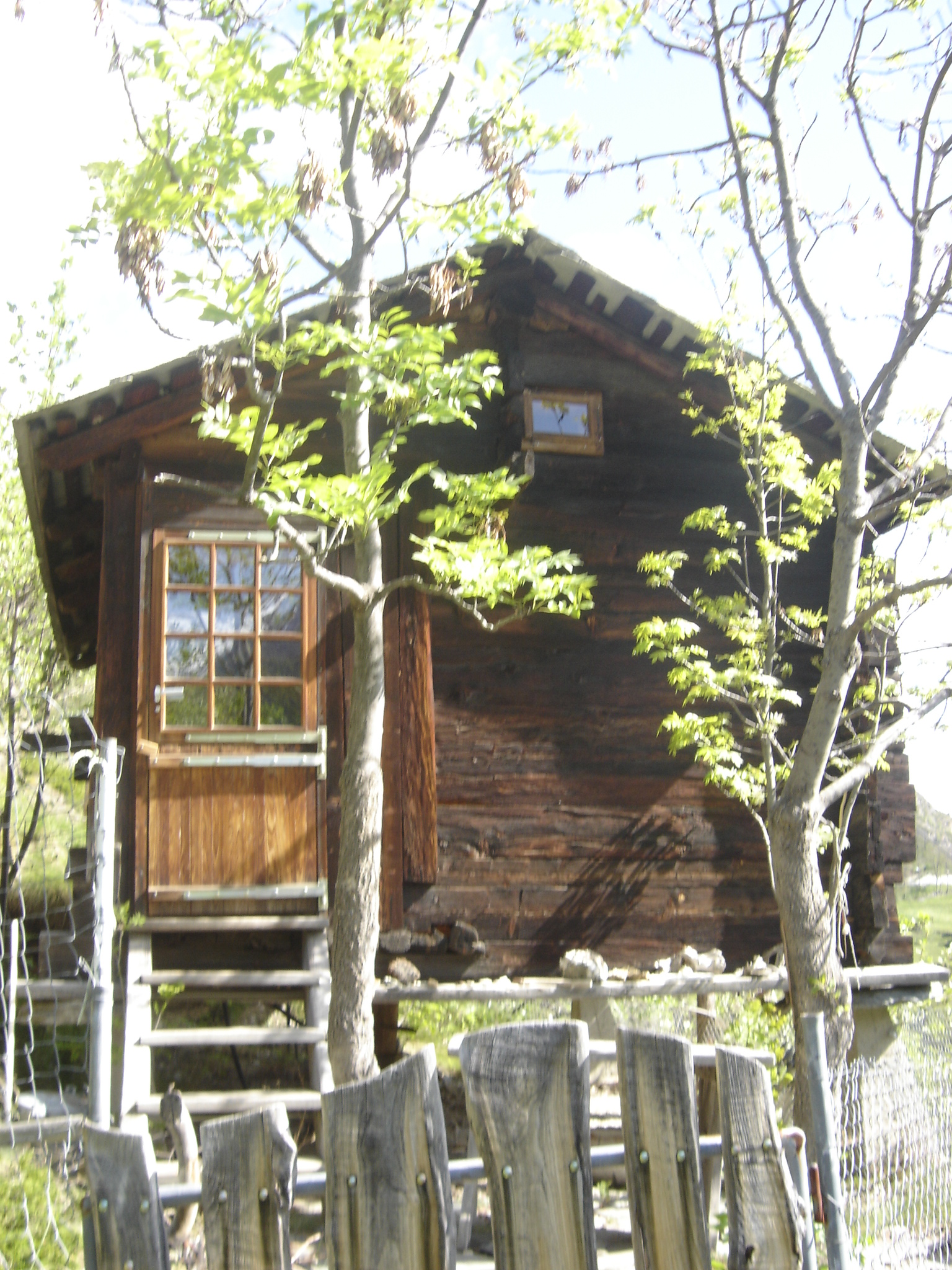 Ferienstadel auf dem WalkersteinLageLe mazot se trouve entouré d’une prairie de pâture de montagne, d’arbres et d’un jardin. A partir du parking il suffit de quelques pas pour atteindre le mazot vieux de plus de 200 ans. La ferme Walkerstein se situe à 1100m d’altitude avec une très belle vue et profite d’un très bon ensoleillement. La ferme se trouve entre les villages de Embd et Törbel d’où une très belle vue sur l’intersection des vallées de Matter(Zermatt) et Saas (Saas Fee) et sur le village de Stalden. La vue sur les sommets environnants est imprenable. Comme le mazot est construit sur un terrain pentu il n’est de ce fait pas très approprié pour des personnes ayant de la peine à se déplacer à pied. StadelA l’origine le mazot était un grenier à céréales, aujourd’hui il a été rénové et transformé mais garde tout son cachet. Il comporte un petit appartement de vacances pour 5 personnes. . Le mazot est meublé très simplement mais confortable. Heute ist der Ferienstadel sanft renoviert und bietet bis zu fünf Personen Platz. Unten im Raum befindet sich ein Tisch mit Eckbank, die Küchennische, ein Holzofen sowie die Toilette und Dusche. Oben im Dachstock liegt der Schlafraum mit fünf Betten. Au rez se trouve une pièce à vivre avec fourneau à bois, une cuisinette avec équipement de base, une table avec banc d’angle et fourneau à gaz Huile, vinaigre, sel, torchons et linges de cuisine sont à disposition. Douches et WC se trouvent aussi au rez. Linges de toilette, draps peuvent aussi être amenés par les vacanciers. Selon la saison nous vendons aussi nos produits Bio de la ferme (légumes, salades) Fromage de chèvre et saucisses PrixLe mazot coute Fr. 60.—par nuit pour 3 adultes (Fr. 10.—supplémentaire par adulte en plus) Enfants jusqu’à 16 ans gratuit Forfait de Fr. 50.—pour le nettoyage final (Fr. 10.—de moins sans le linge de nuit) La taxe de séjour est de Fr. 1.50 par personne et par jour. BuchungInformations et réservations uniquement par téléphone au No. 0041 (0)27 952 29 58 |